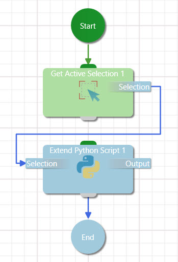 Add a View Selection component by navigating to PointStudio > Home > View Selection. Add the View Selection component to the workflow after the Extend Python Script component. The workflow should look like this: