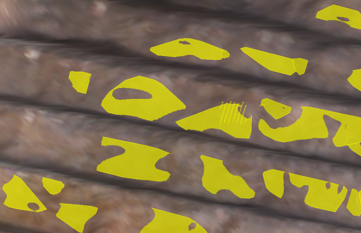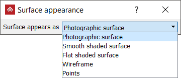 Note: Discontinuities can be displayed in different formats to suit the operator's preferences. Select the discontinuities in the geotechnical container and apply Colour > Surface appearance. Options include Annotated, Flat shaded surface and Wireframe.