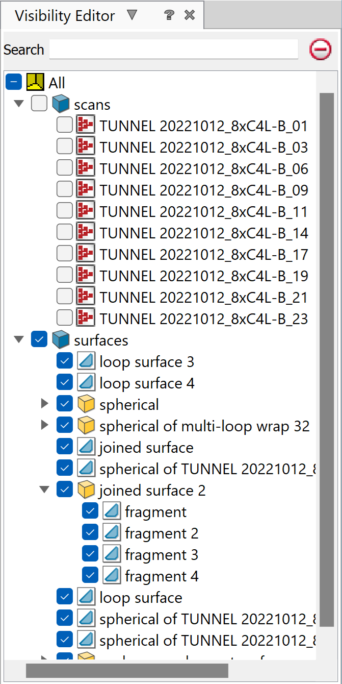 The visibility editor enables you to control the visibility of objects loaded into the view.