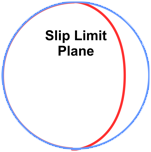 Slip limit Great circle representation of the plane at which friction slipping will occur. Poles (normals) closer to the outside perimeter of the main circle are steeper, so will slide or topple. Note