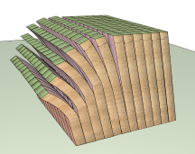 Forwards flexing and downward-sliding of steeply slanting blocks or layers. |