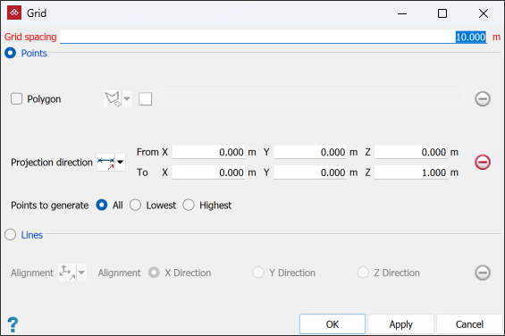 Select which Points to generate in the grid from All points fitted to the surface, the Lowest points, or the Highest points.