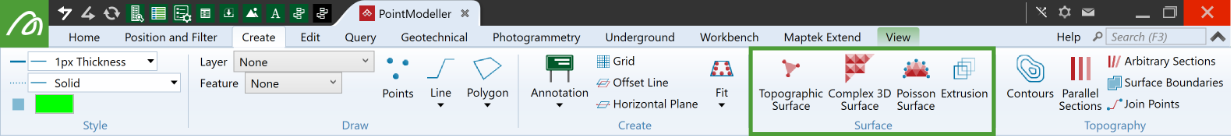 Topographic Surface (Alt+2) Create a surface from a plan view perspective. |