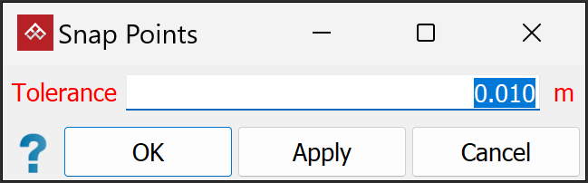 In the Tolerance field, enter the required snap tolerance to define the maximum distance between points for a snap to occur.