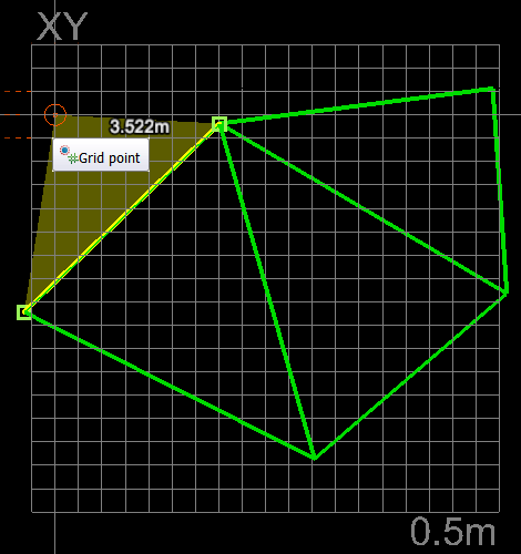 The Extend Surface tool allows you to add new facets to the edge of a surface by defining new points as outer corners of new facets. A new facet is made up of three vertices (points) and one or two borders that are shared with other facets of the surface.