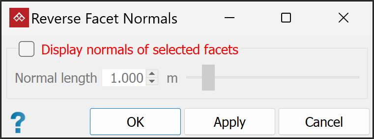 Important: If you clicked Apply, close the tool by clicking Cancel. If you click OK with facets selected, the operation will run again, returning the selected normals to their original orientations.