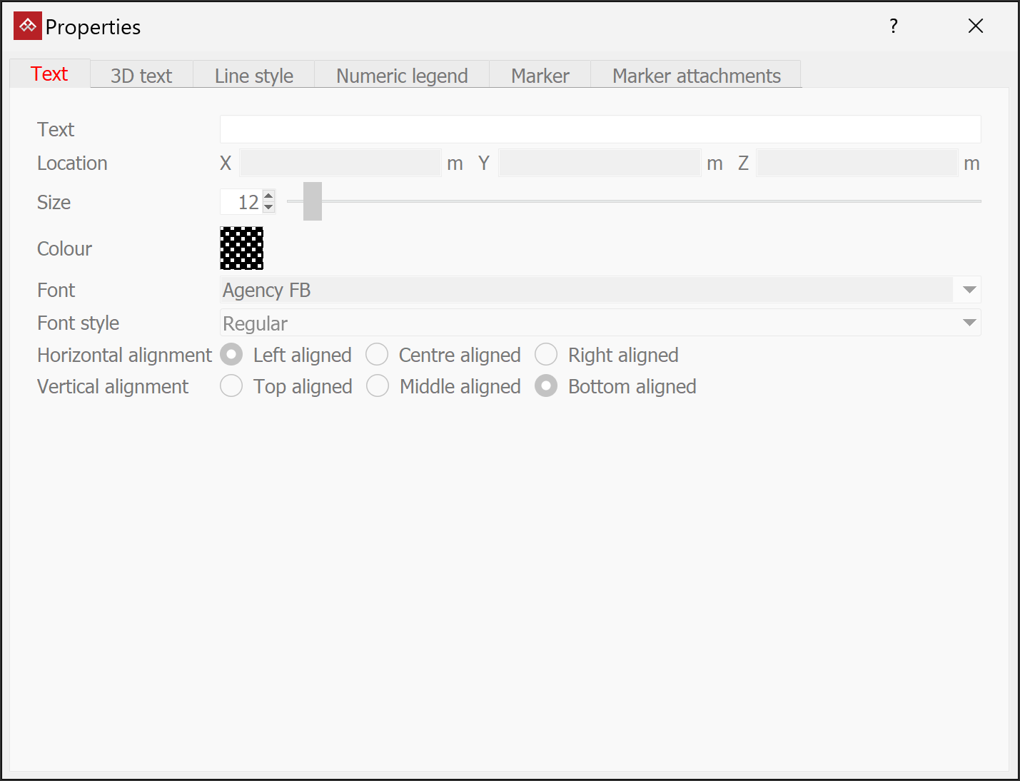 Location: Reposition the text in space. Either pick the new location in the view window or enter its coordinates.