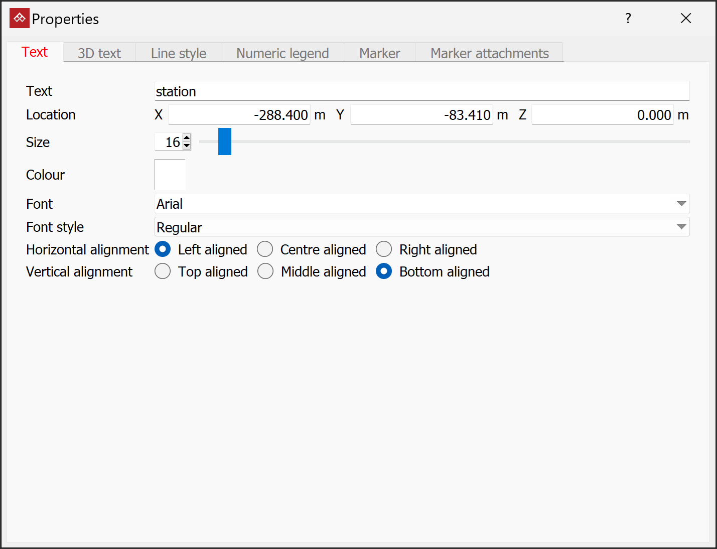 Marker colour and Text colour: Change the marker and text colours. Single-click for the basic colour palette, double-click for the advanced colour palette (see Using the colour selector below).