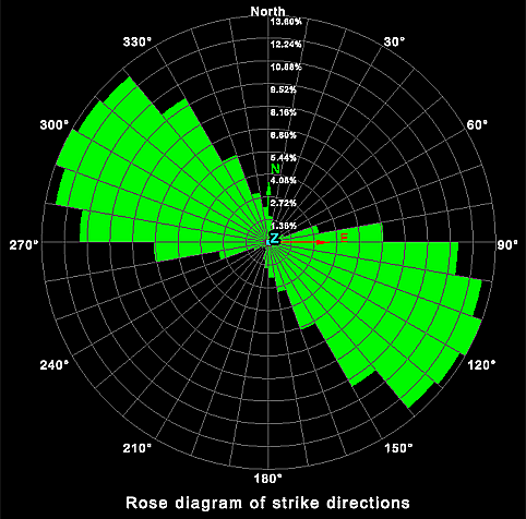 Strike direction plots the strike direction of the planes.