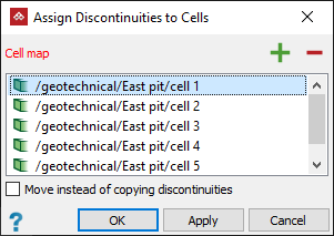 Discontinuities are assigned to cells that contain them when superimposed in 3D space. The result is that individual discontinuities appearing within a cell will be either copied or moved to the cell object itself.
