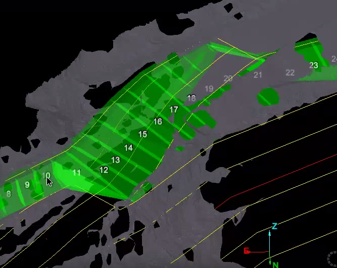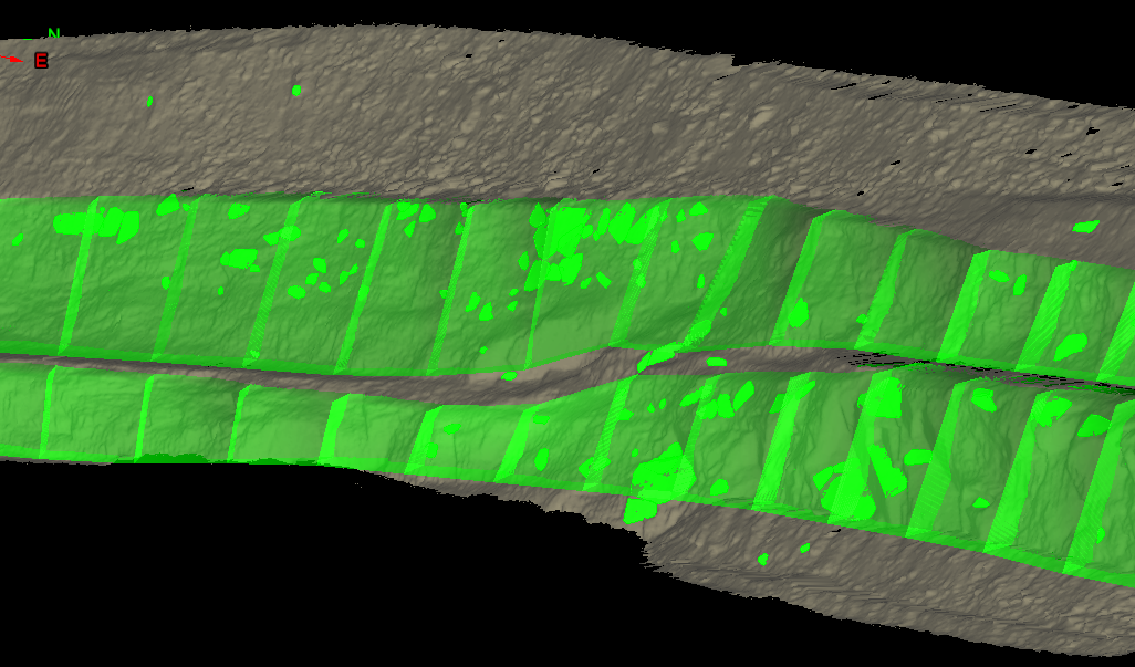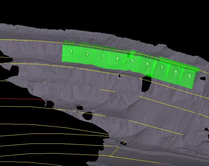 A cell run created using top toe and crest lines in a pit configuration. |