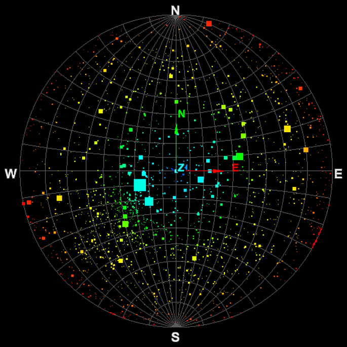 plots slope and slope direction (dip and strike) of the poles of discontinuities