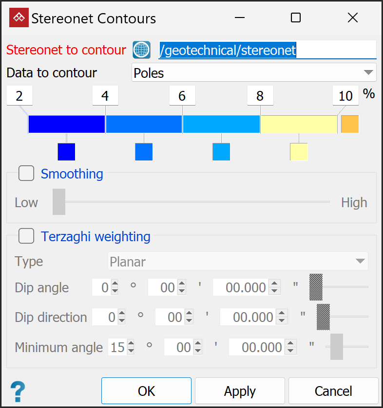 From the Data to contour drop-down, select Poles or Intersections as the base objects for contours.