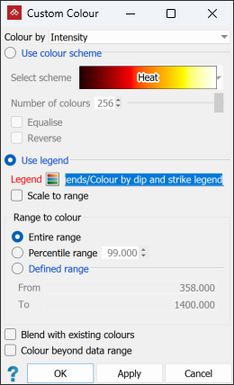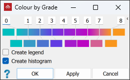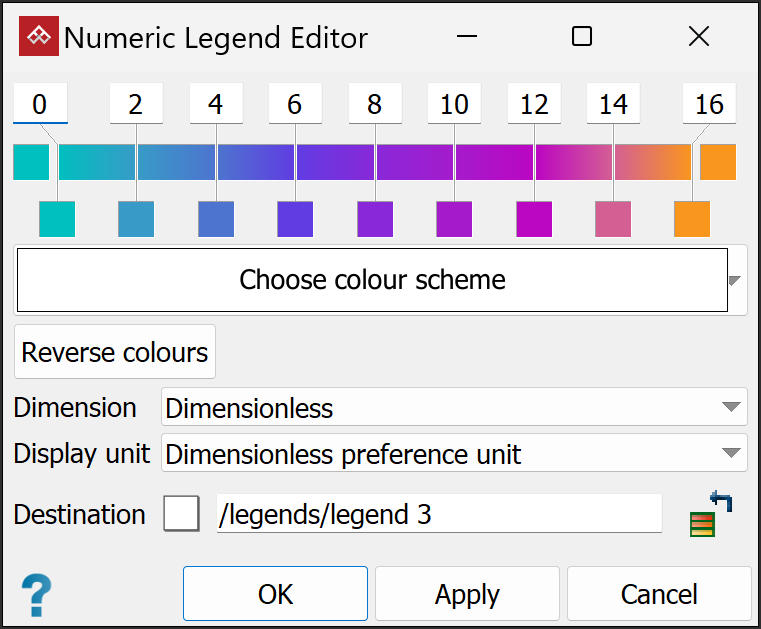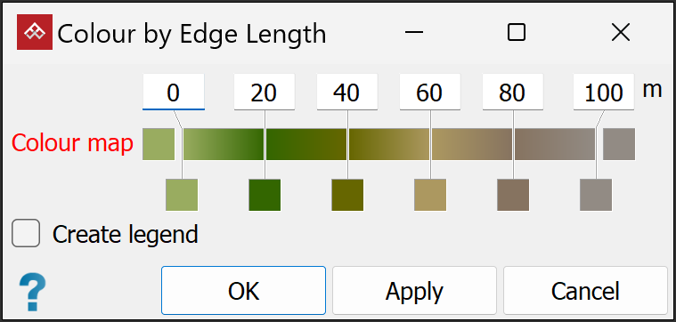 (Optional) To make a legend indicating the colour scale, select Create legend. When you apply the colour map, a legend named