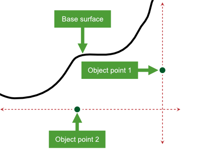 If you choose Closest vertical point, the No measurement colour is applied to object point 1 because there is no base object point above or below.