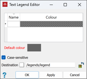 Text legends are used to create or edit sets of text names, and colours to represent the names. Create a text legend as follows: