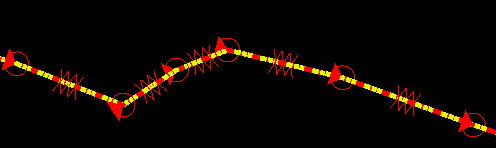 Example 1. A red line based on a text pattern and using glyphs. Transparent spaces have been replaced with the colour yellow. |