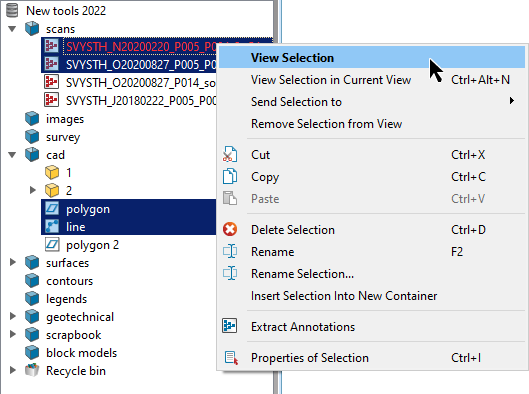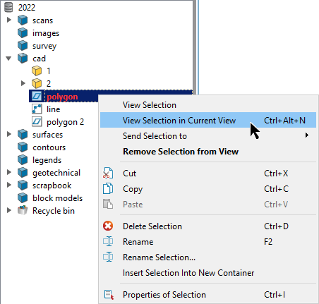 Tip: This is handy if multiple objects are displayed in the same view window. Instead of looking for the objects in the project explorer, you can quickly identify and select the objects that require further independent work in the new view window.