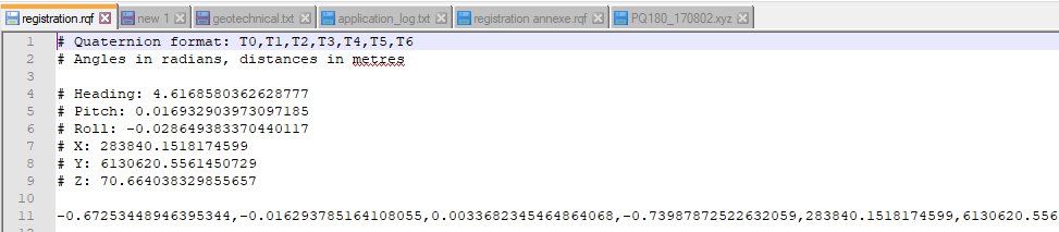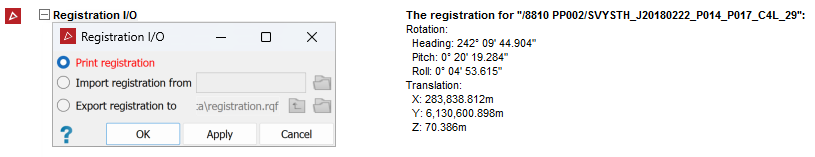 Export registration data to will export registration data from a selected object into a text file.