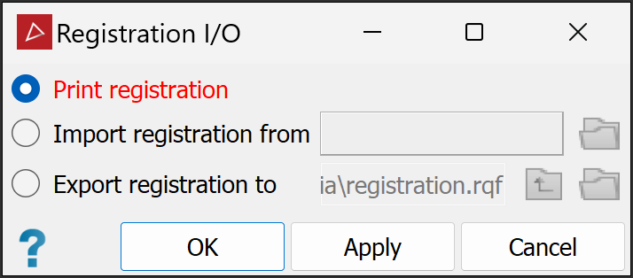 The Registration I/O tool has the following options: