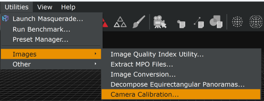 From the Utilities menu, in the Images sub-menu, select Camera Calibration....