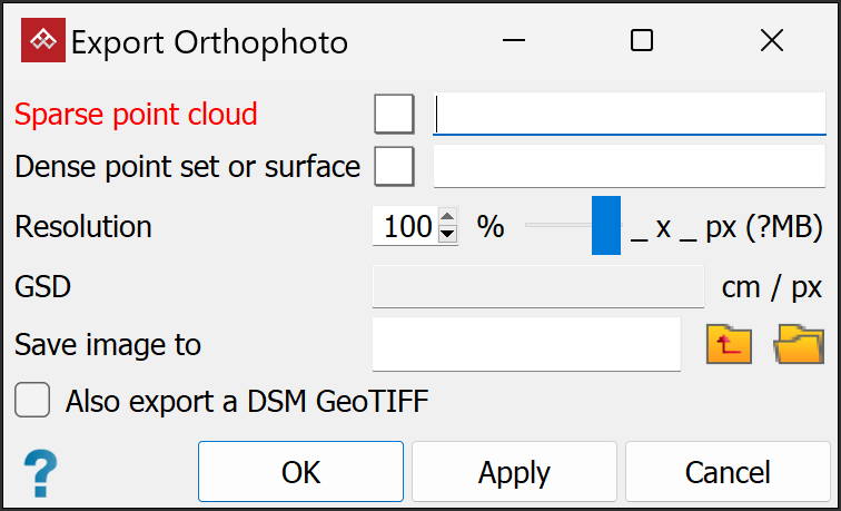 (Optional) Select Also export a DSM GeoTIFF if you need a the data in a Digital Surface Model GeoTIFF file.