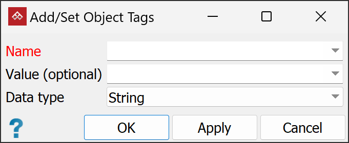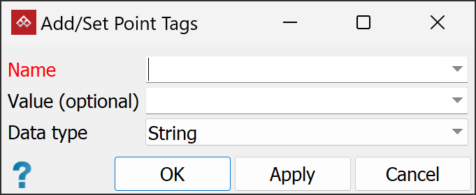 Apply Object/Point Tags from the drop-down.Either an Add/Set Point Tags or an Add/Set Object Tags panel will open.