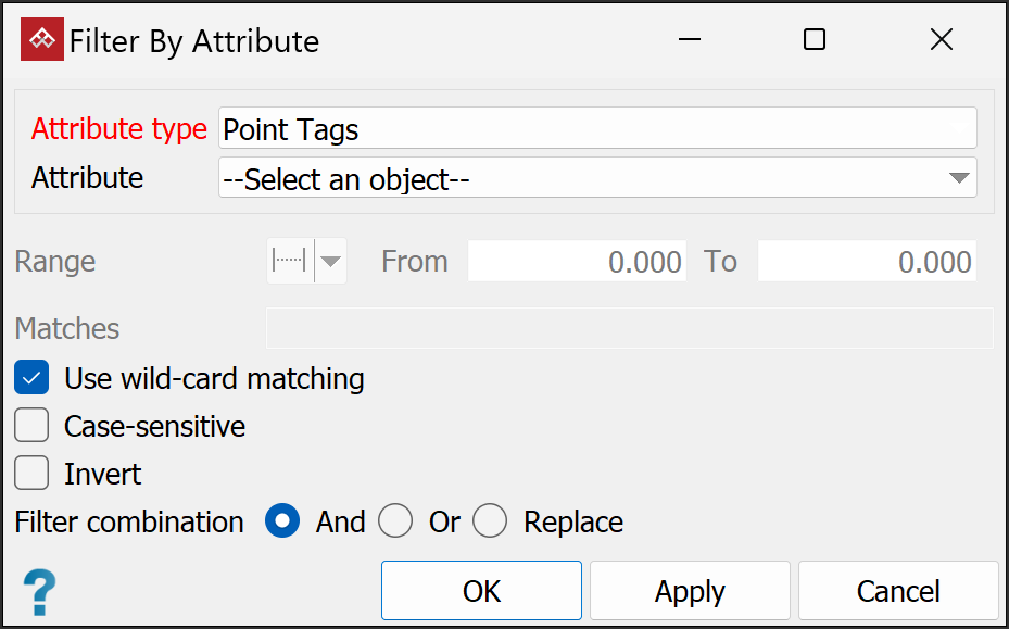 Select Use wild-card matching to filter key words in attributes, with