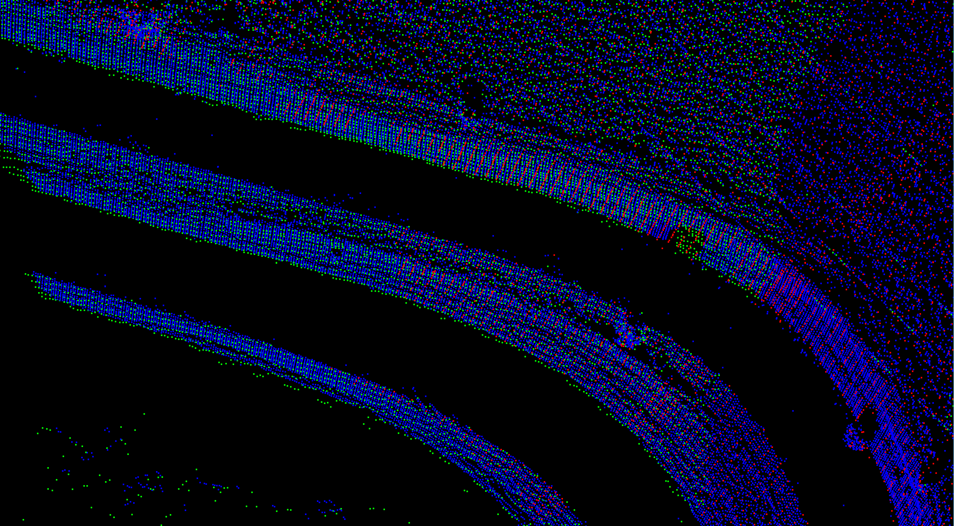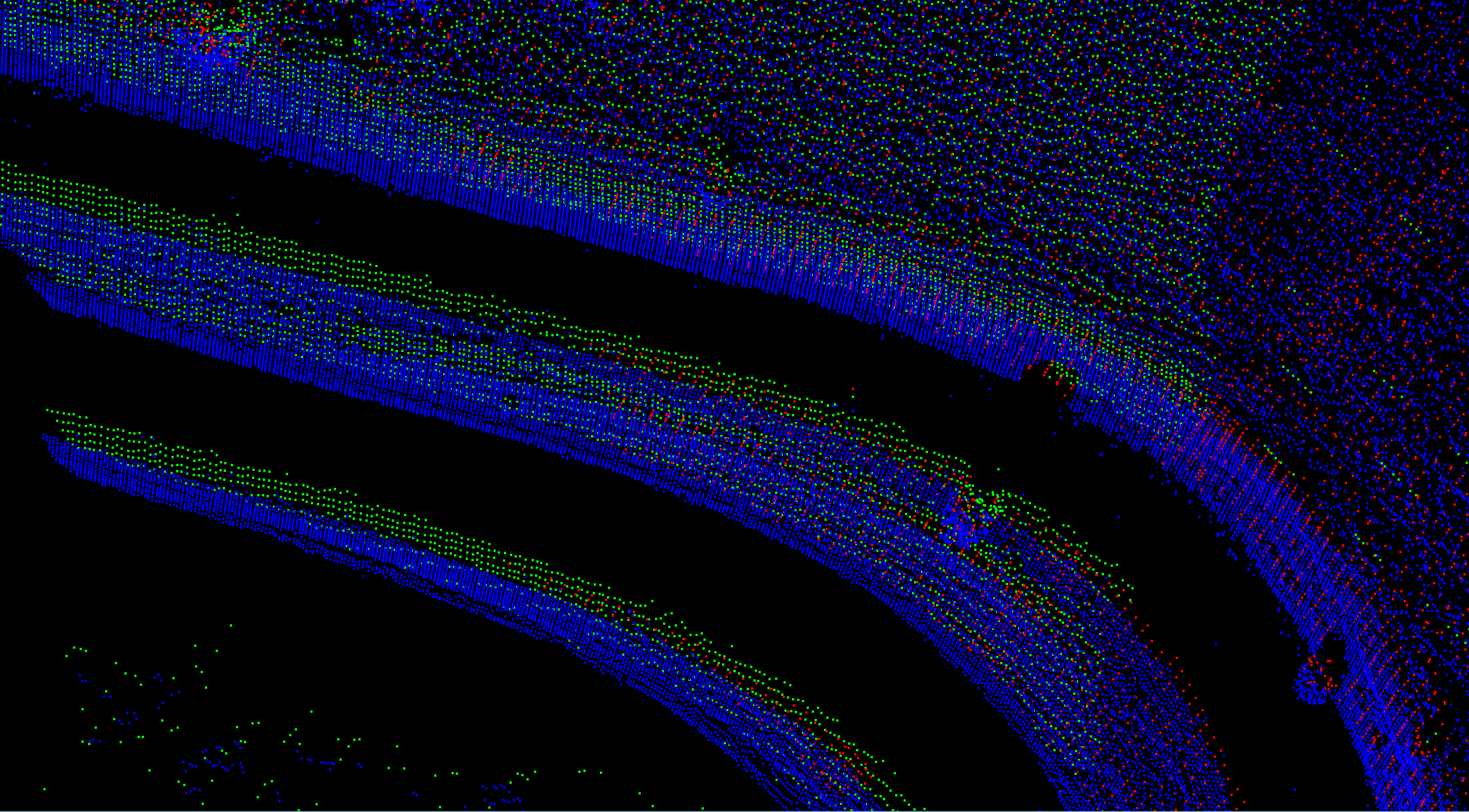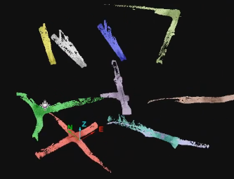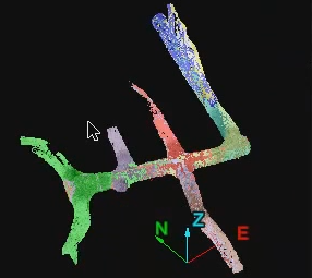 An initial group of unregistered tunnel scans (left) automatically aligned (right). |