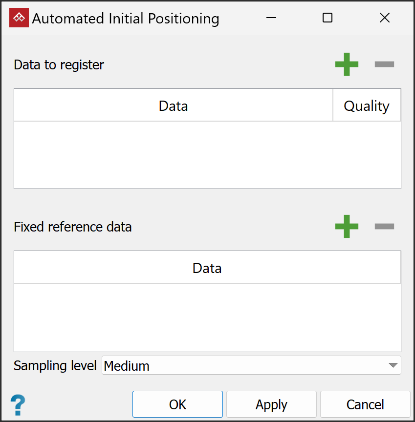 The Automated Initial Positioning tool (Position and Filter tab > Register group) enables you to register unregistered scans against a reference scan. This tool produces a reasonably good fit for a first attempt. Once positioned, the registration should be completed using Global Registration.
