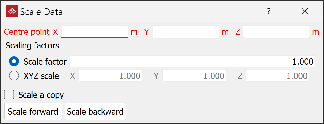 Tip: To scale scans horizontally, enter the scaling factor for X and Y, and set Z to