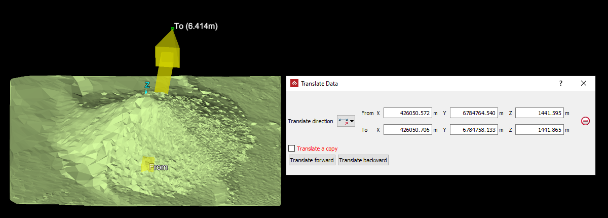 Click Translate forward to perform the translation process. Use Translate backward to retrace the path back to the start position.