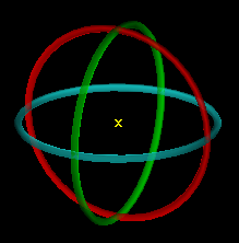 When launched, the transform tool appears at the centre of rotation with its axes, planes, and rings aligned with the view window axes. To reposition it, set a new centre of rotation. See Camera > Set Centre of Rotation.