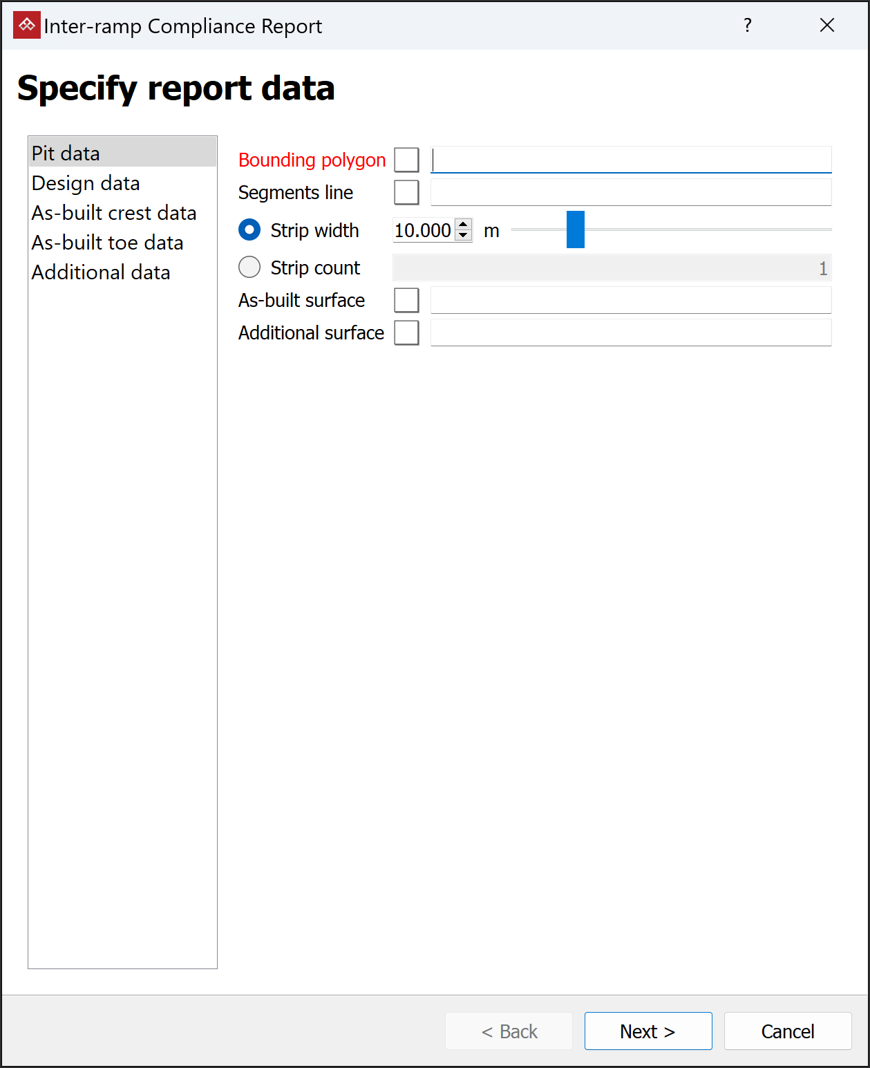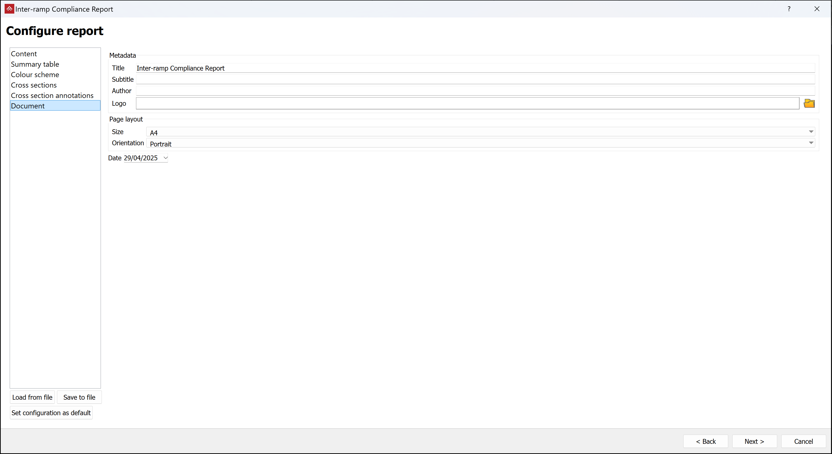 The Inter-ramp Compliance Report panel will open on its Specify report data page.