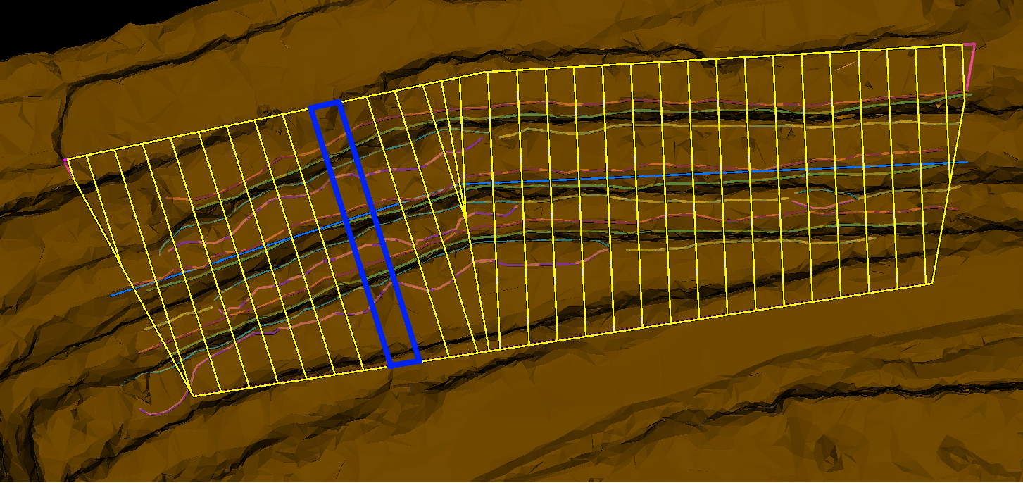 • Muck top and bottom lines. If an actual toe line is obscured by a muck pile, you can specify the muck top and bottom lines.