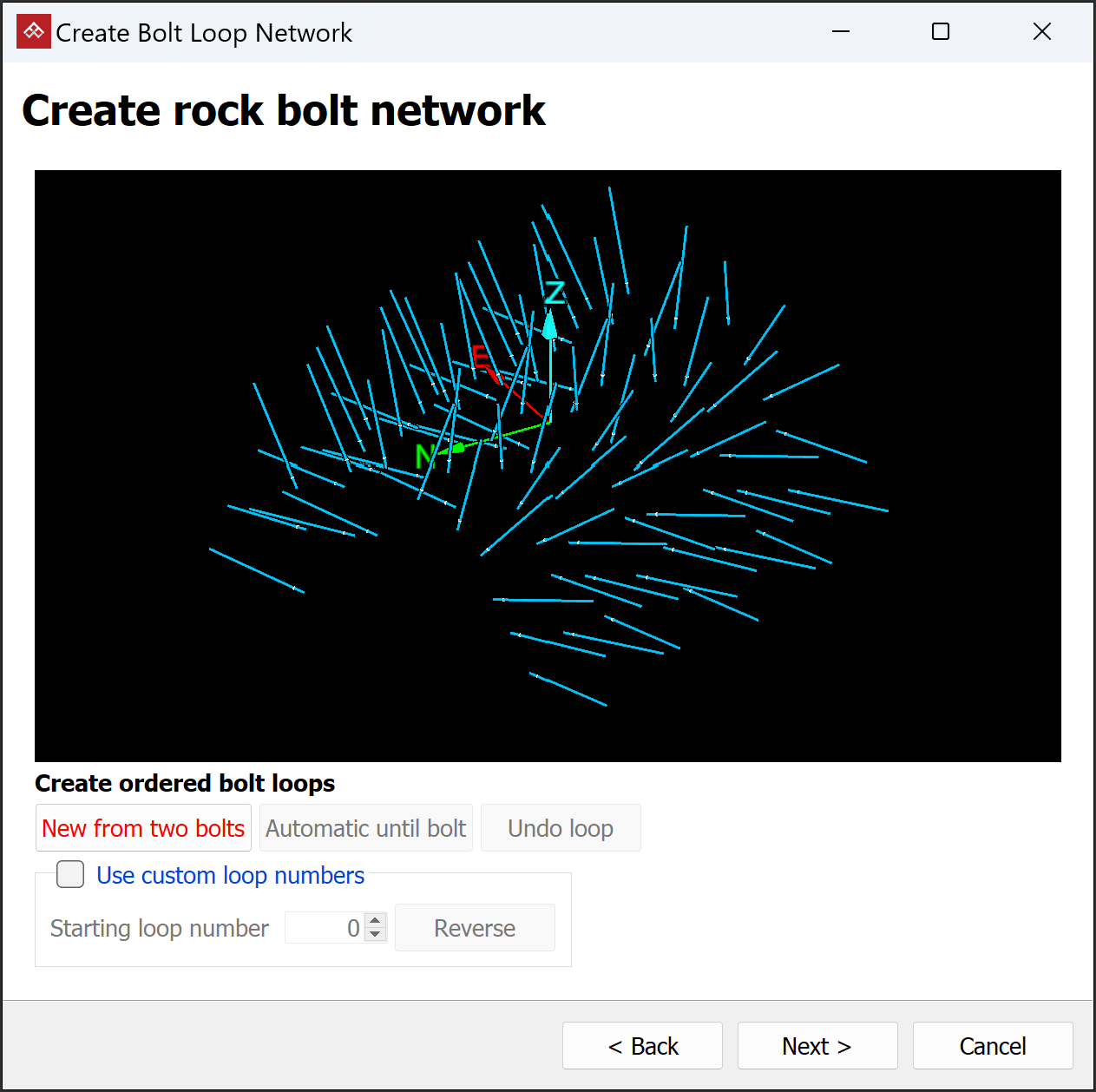 The Create Bolt Network tools enable you to make connections between bolts in tunnel and wall modelling to assist with analysis, planning, and reporting.