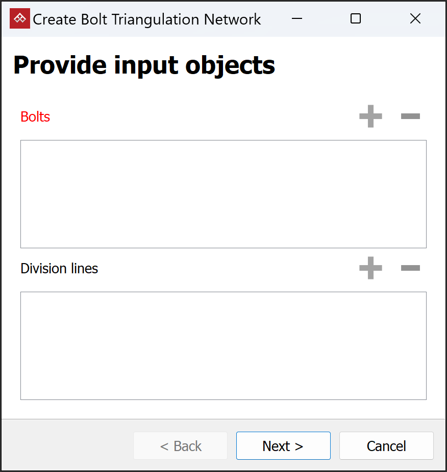 Create Bolt Triangulation Network from the Create Bolt Network drop-down.The Create Bolt Triangulation Network panel will open.