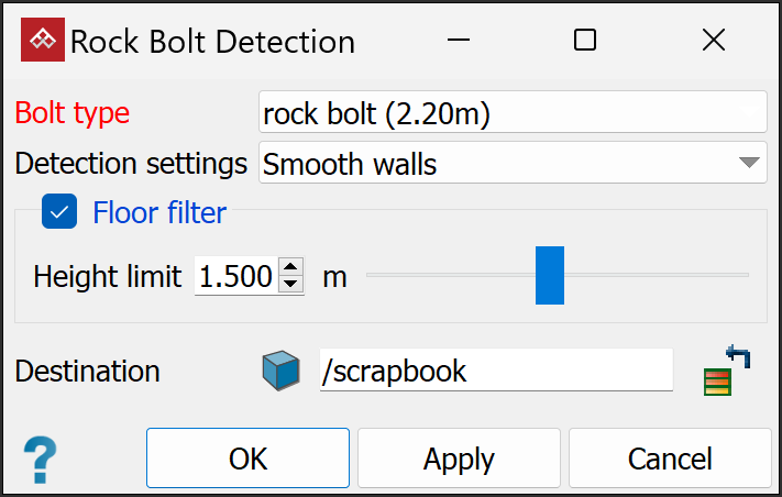 Rock Bolt Detection.The Rock Bolt Detection panel appears.