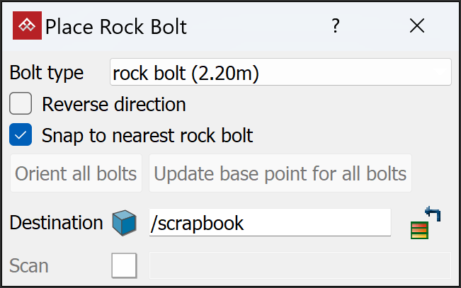 Tip: If the Place Rock Bolt tool does not produce satisfactory snapping locations, clear Snap to nearest rock bolt.