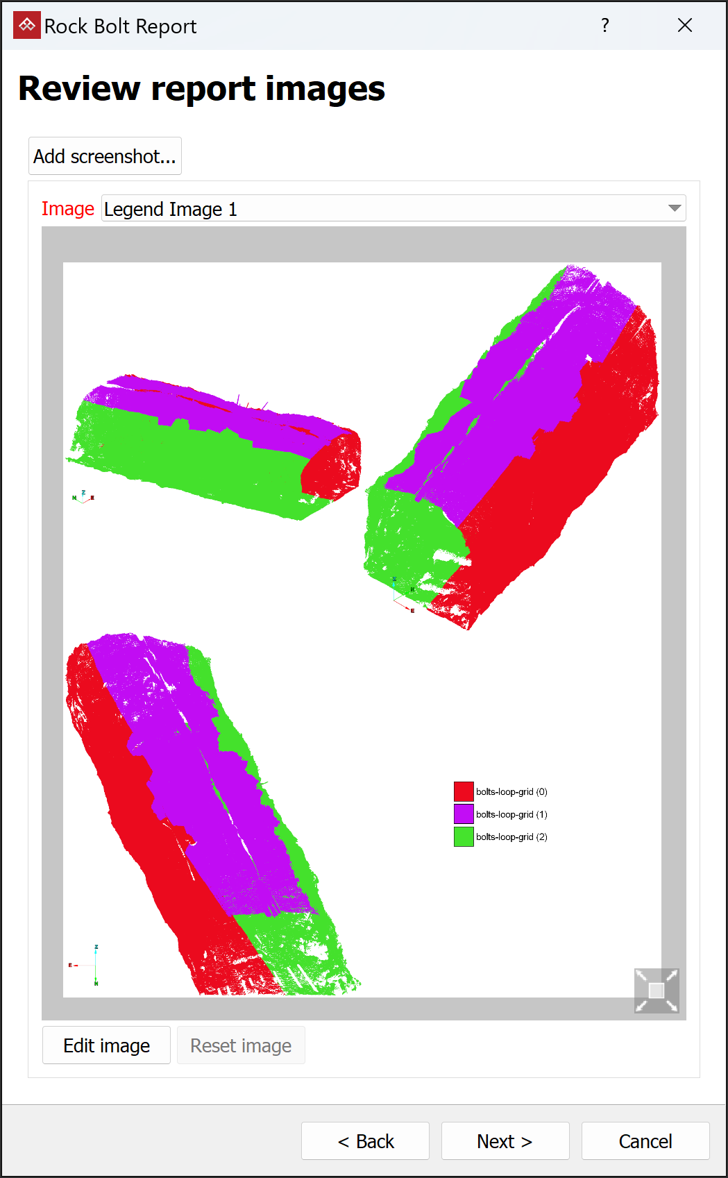 The Rock Bolt Report tool allows you to generate a PDF report that visually and numerically summarises the distribution of rock bolts.