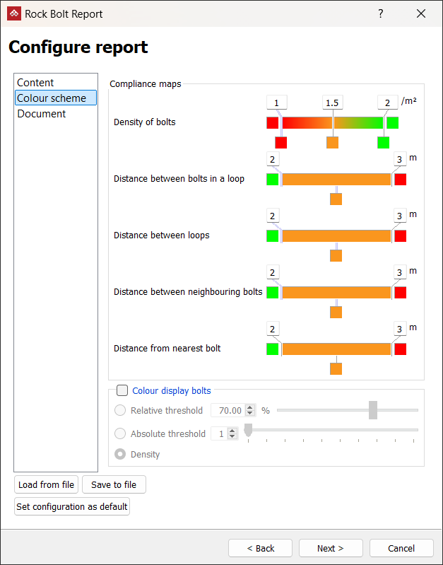 Set the Colour Scheme for the rock bolts and the cut-off distance between them.