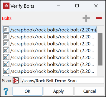 In the Scan field, specify the source scan to verify the rock bolts against.