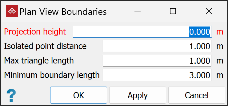 Enter the plane's height by either typing in the Projection height field or clicking a point at the required level in the view window.
