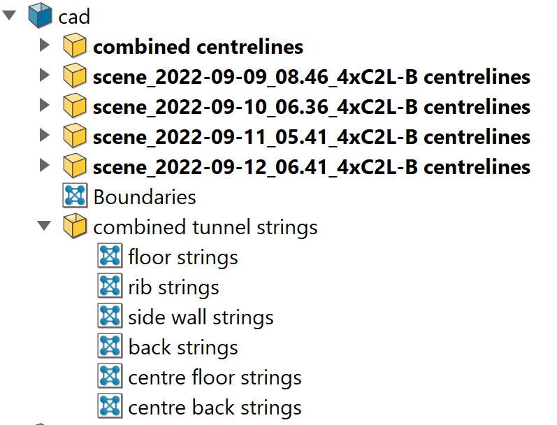 The Tunnel Strings tool generates the following strings to delineate tunnel floors, walls and ceilings: