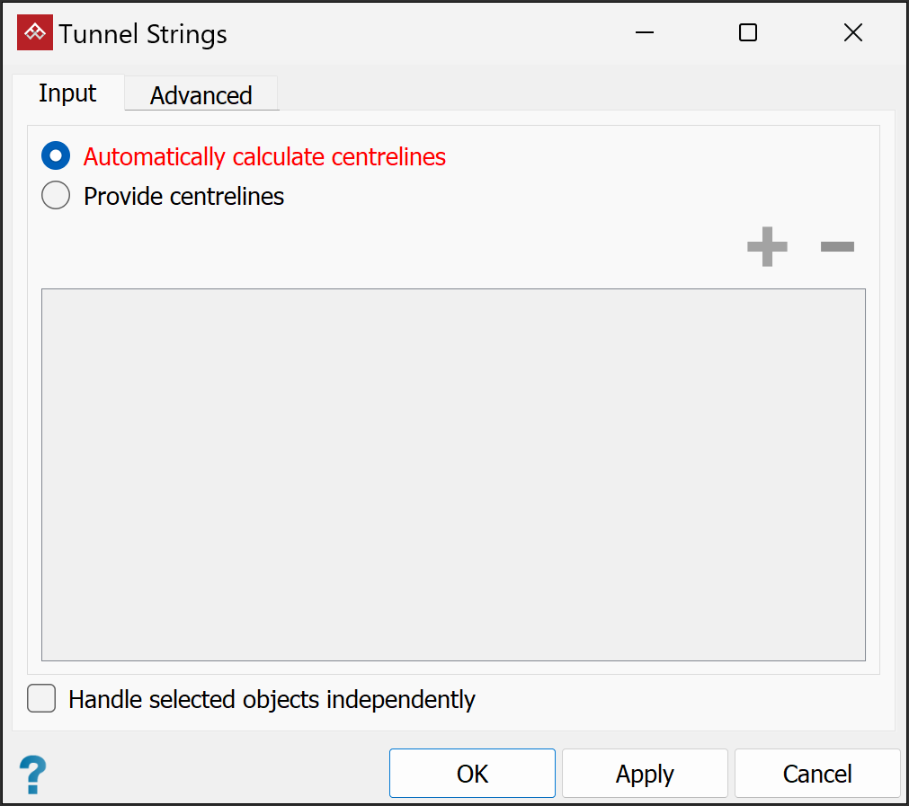 When Handle input objects independently is checked, names given to the centreline containers are derived from the individual input point cloud names.