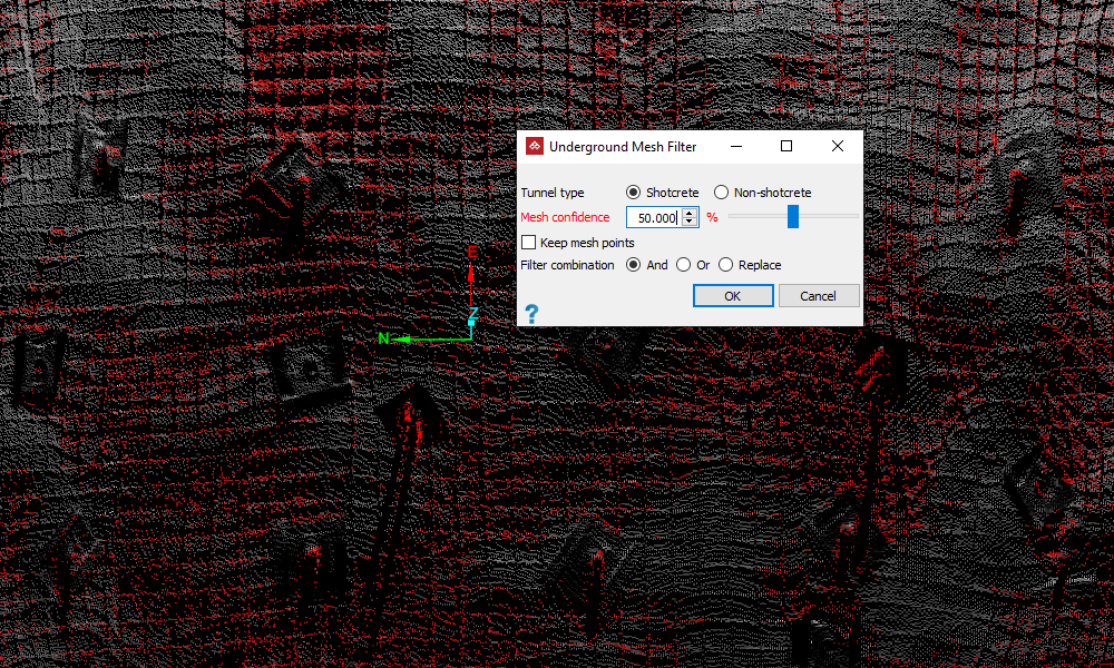 The Underground Mesh tool enables you to filter out wire reinforcement mesh from tunnel walls.