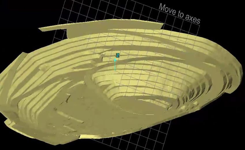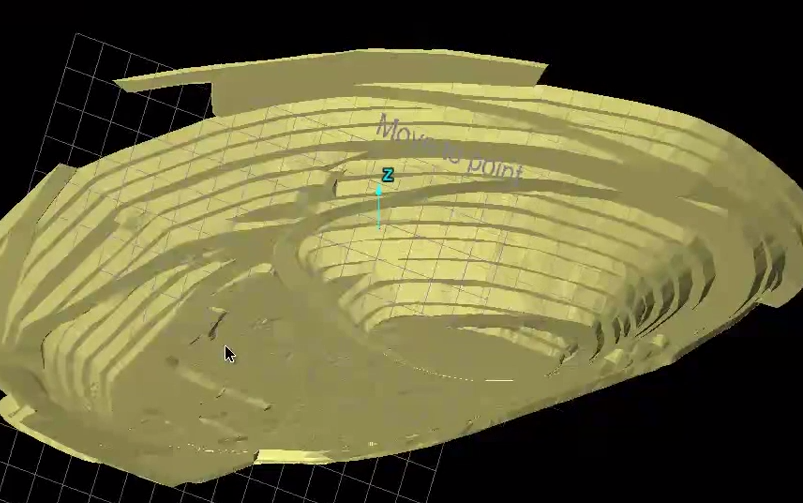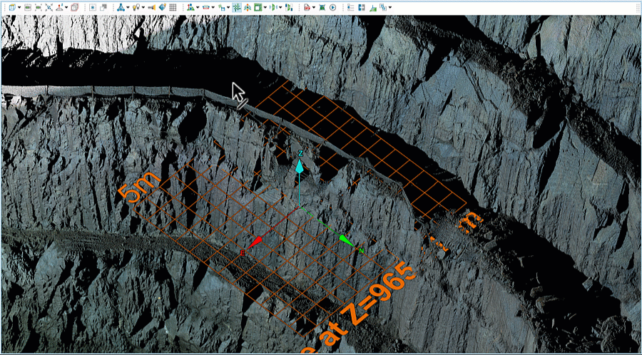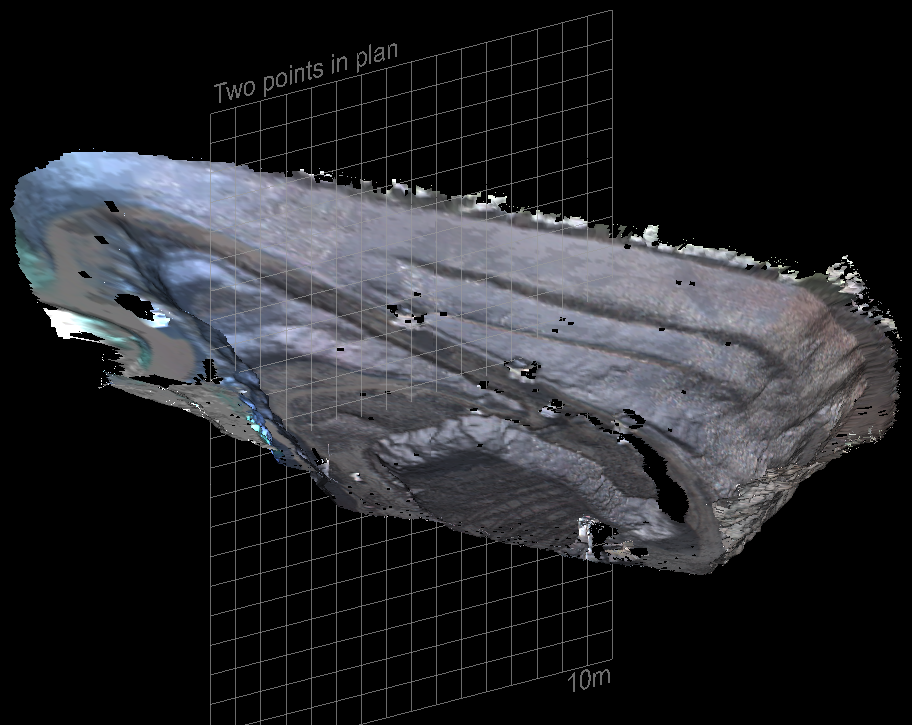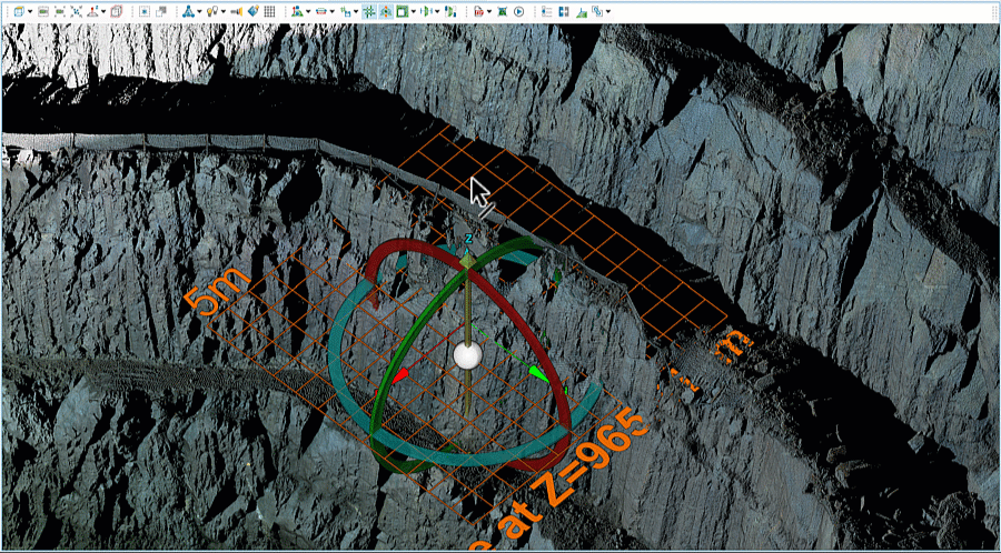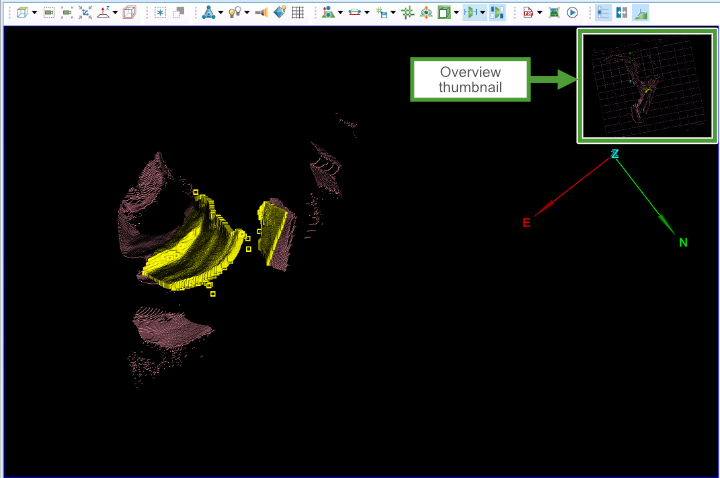 Viewing a horizontal section through a pit using the XY-positioned action plane. |