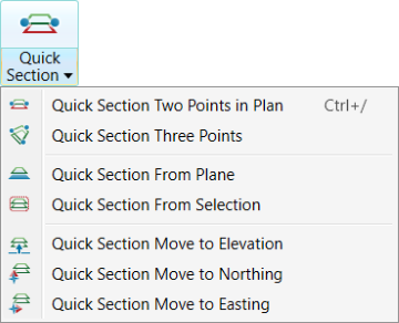 Quick Section Two Points in Plan (Ctrl+/) Pick two points to set a vertical action plane, then apply section mode. Note: Quick Section Two Points in Plan (Ctrl+/) is also available from the
