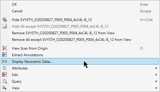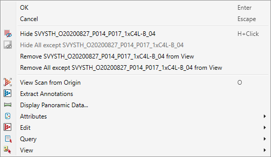Note: Only currently selected scans appear in the context menu list, regardless of which scans are loaded in the view window.
