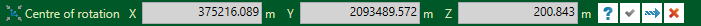 To set the centre of rotation at the origin of a scan, right-click on a coordinate field in the status bar and select the scan name from the context menu.